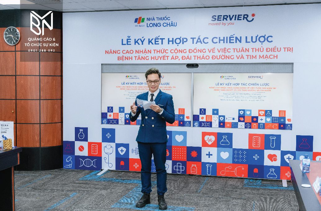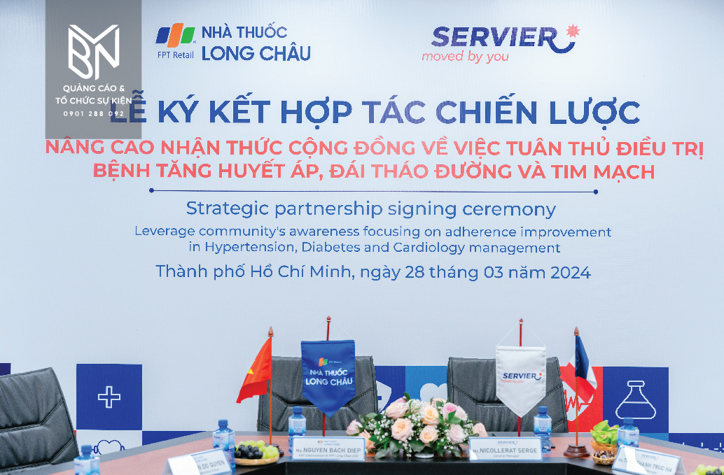 Sự kiện ký kết hợp tác chiến lược giữa FPT Long Châu và Servier Việt Nam đã diễn ra thành công tại TP. Hồ Chí Minh vào ngày 28/3. Nhằm nâng cao ý thức tuân thủ điều trị của người bệnh, thỏa thuận này có ý nghĩa quan trọng trong ngành y tế. Để khoảnh khắc này diễn ra một cách hoàn hảo và chuyên nghiệp, BVN đã được tin tưởng lựa chọn là đối tác thi công toàn bộ sự kiện.