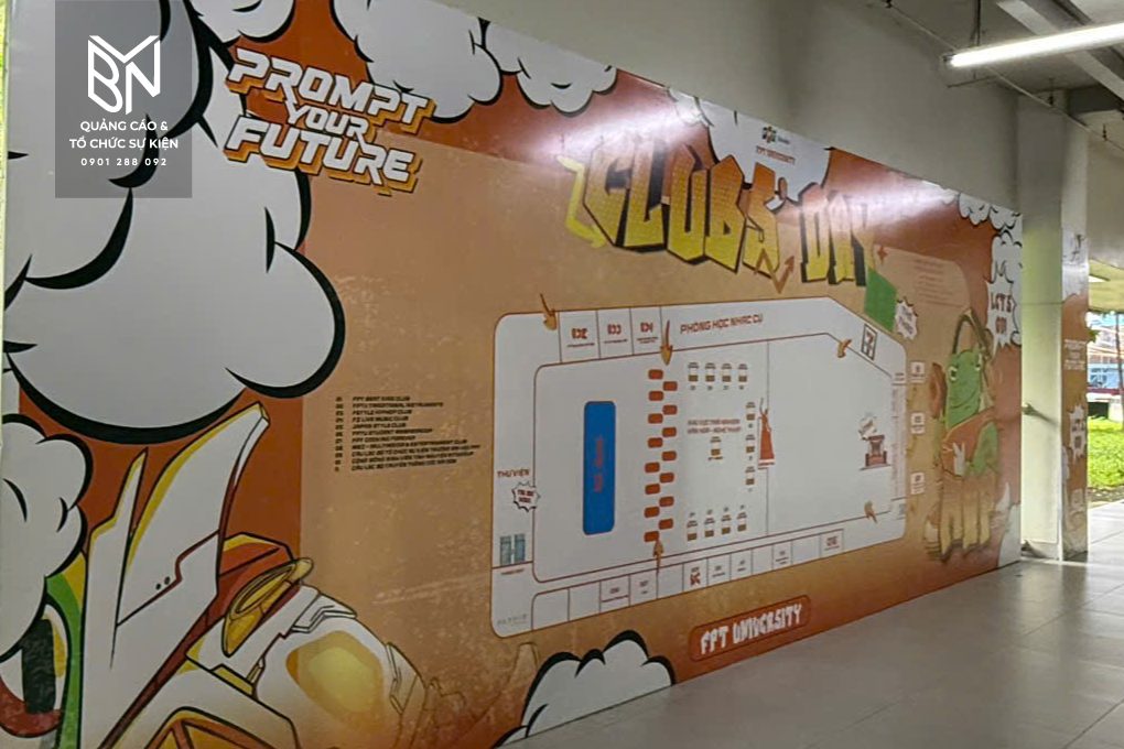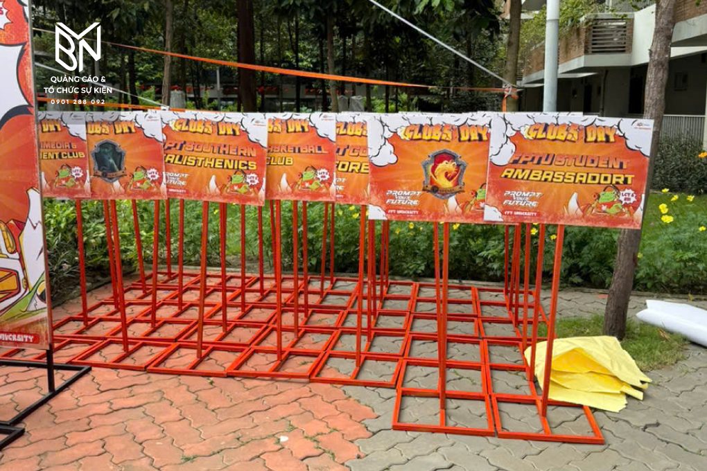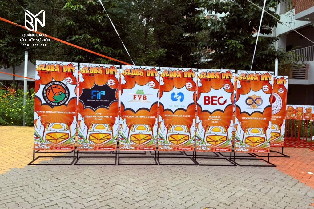 - Mỗi gian hàng đều có một bảng hiệu và standee gian hàng riêng biệt, được thiết kế đồng bộ với chủ đề chung nhưng vẫn mang dấu ấn cá nhân của từng câu lạc bộ hay bộ phận.