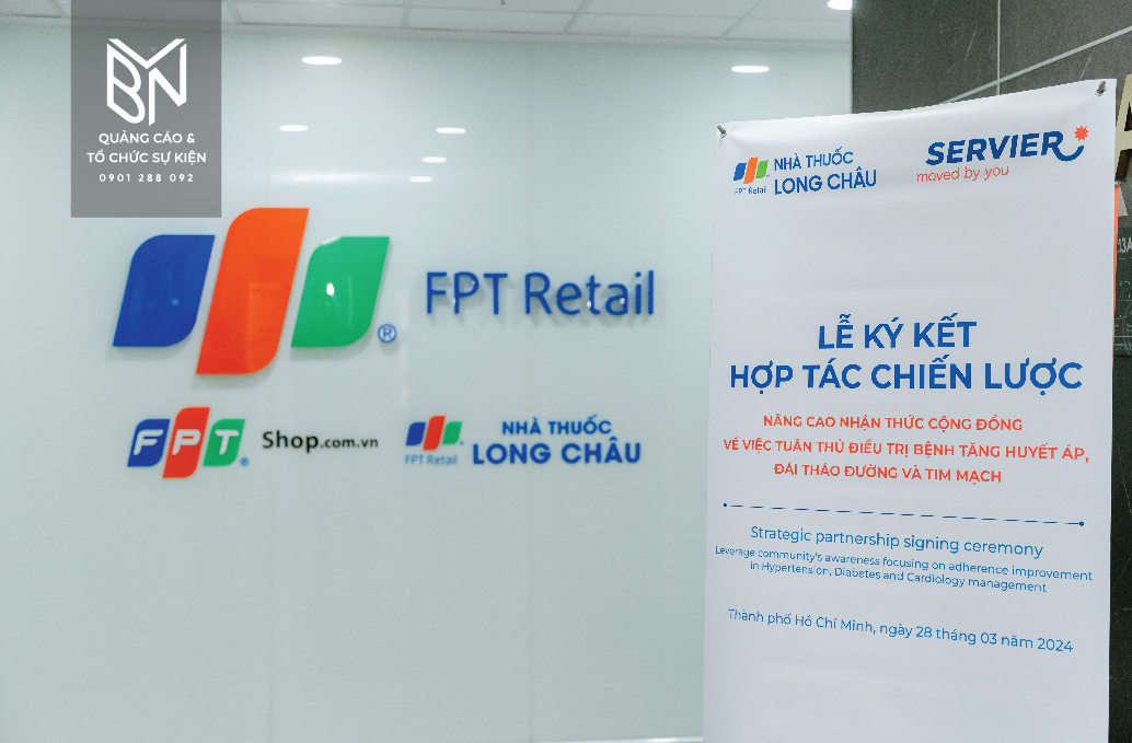 Sự kiện ký kết hợp tác chiến lược giữa FPT Long Châu và Servier Việt Nam đã diễn ra thành công tại TP. Hồ Chí Minh vào ngày 28/3. Nhằm nâng cao ý thức tuân thủ điều trị của người bệnh, thỏa thuận này có ý nghĩa quan trọng trong ngành y tế. Để khoảnh khắc này diễn ra một cách hoàn hảo và chuyên nghiệp, BVN đã được tin tưởng lựa chọn là đối tác thi công toàn bộ sự kiện.