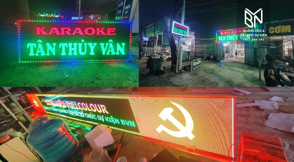 - Kỹ thuật thi công BVN: Lắp đặt khung xương chịu lực, ghép nối module LED chính xác, đi dây điện an toàn và lập trình nội dung theo yêu cầu phức tạp.