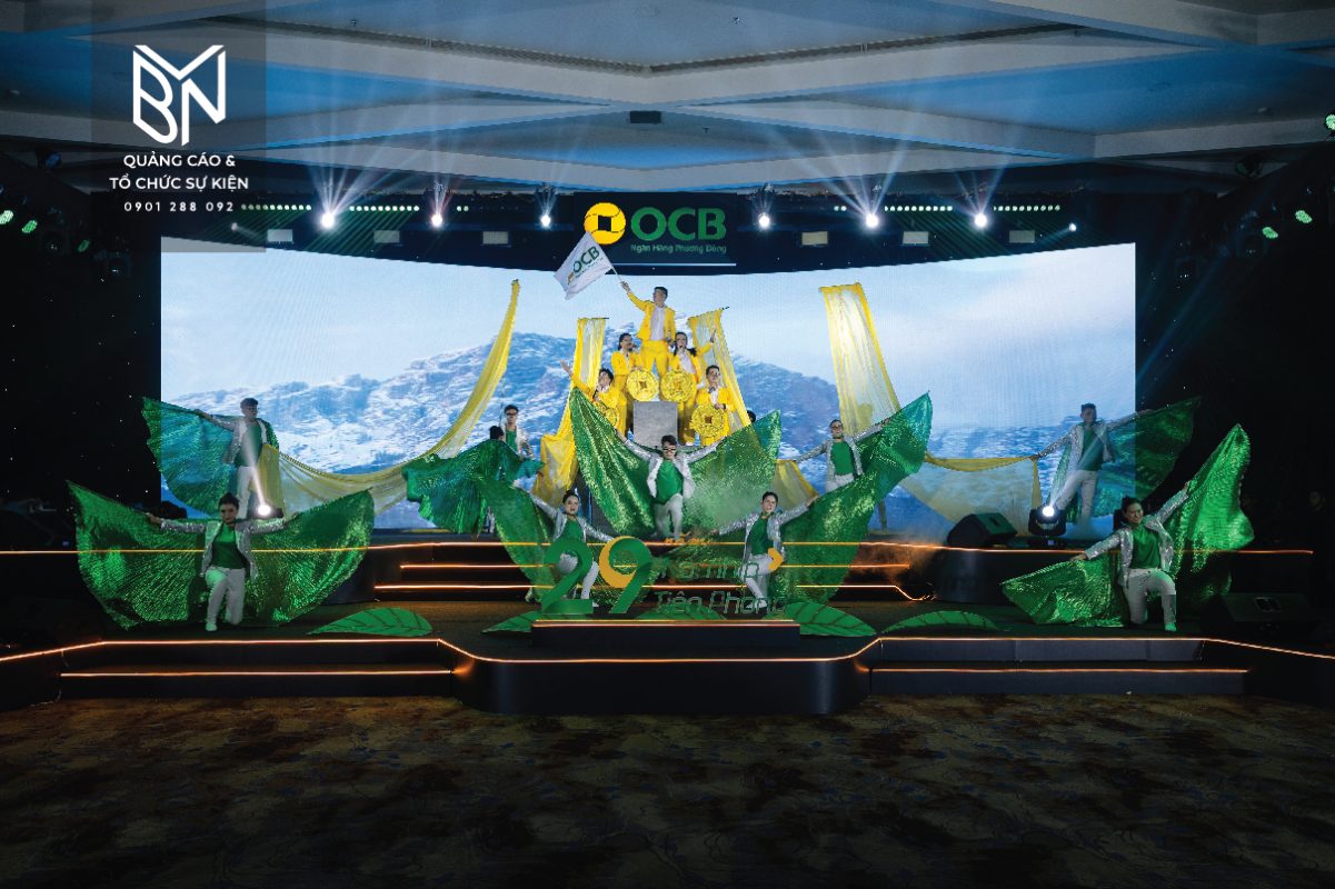 Sân khấu, màn hình LED, backdrop: Thiết kế ấn tượng, truyền tải thông điệp rõ ràng.
